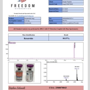 GLP-3RT 6MG is a GGG tri-agonist that targets GLP-1 and GIP receptors, akin to standard GLP-1 agonists, but also uniquely activates the glucagon receptor. This extra receptor interaction enhances glucagon production, thereby increasing basal metabolism. Its actions on GLP-1 and GIP receptors promote delayed gastric emptying and appetite control, offering a comprehensive approach to obesity research distinct from older GLP-1 agonists.